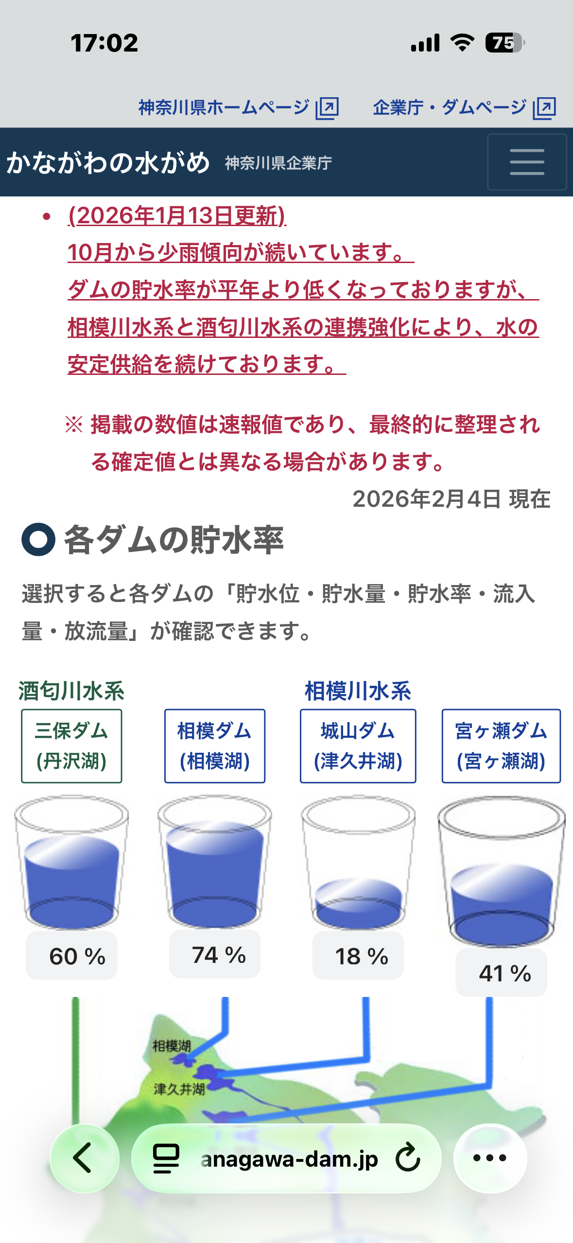 現在ダムの貯水率60%