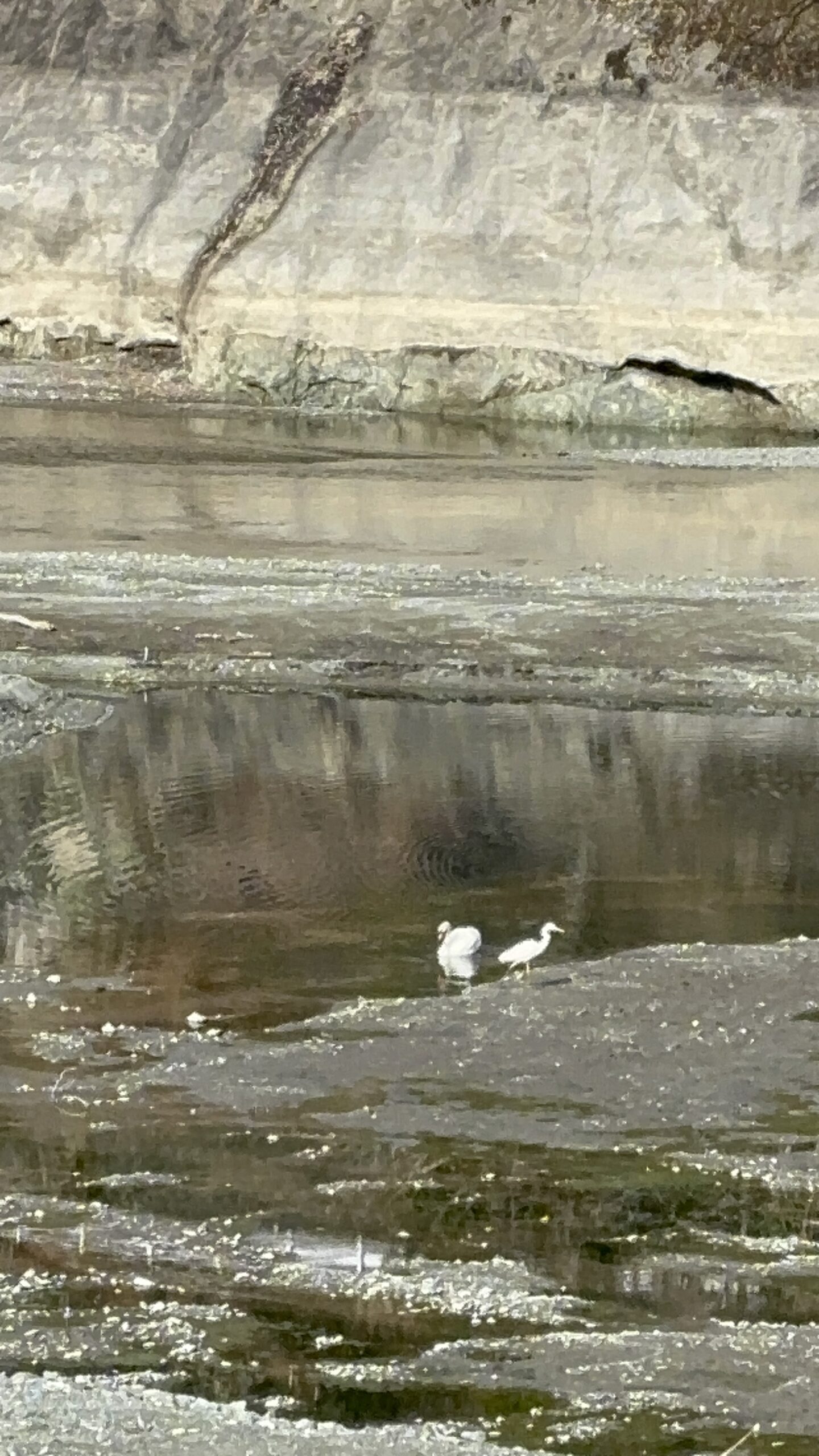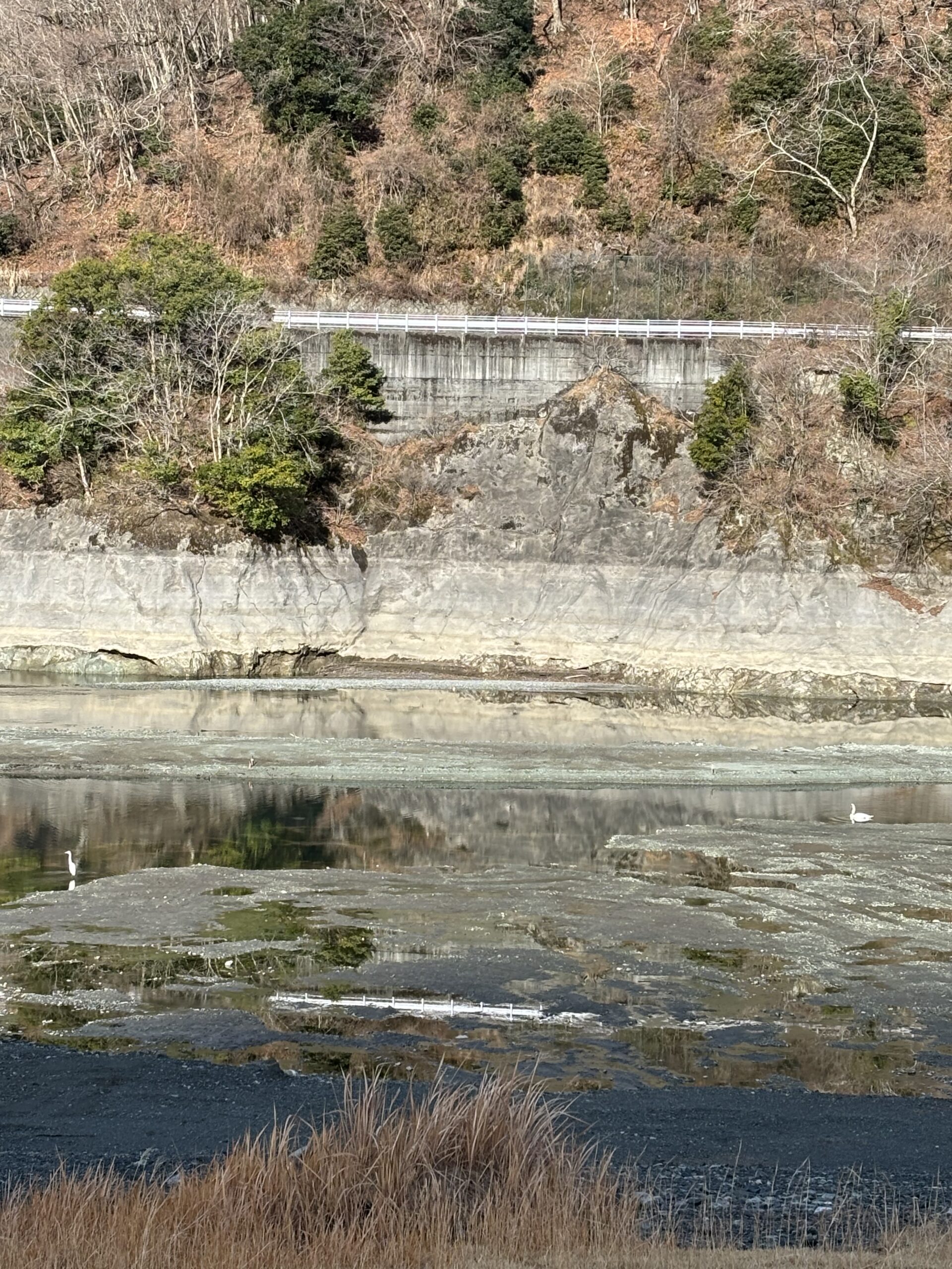 厚化粧した富士山。丹沢湖はまだまだ水が少ないです。白鳥と白鷺。最初は画面の端と端だったのがだんだん近づいてツーショット(^^)